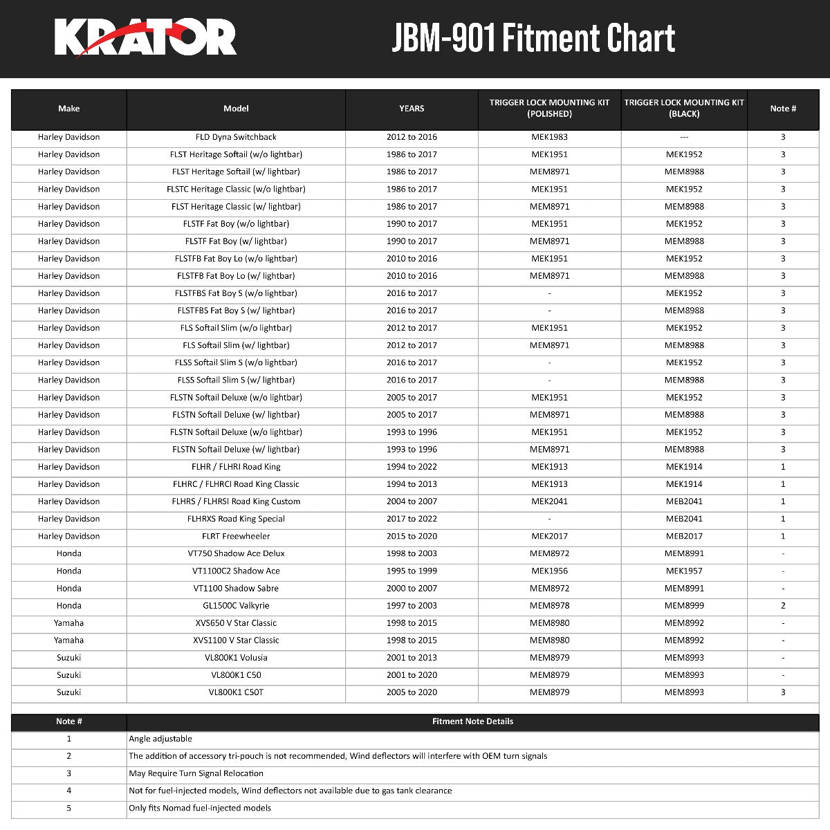 - Harley Davidson FLSTF Fat Boy 1990-2017 | Mounting Kit: MEK1951, MEK1952 (MEM8971 or MEM8988 instead for Models w/ Lightbar) [Refer to Note #3]
