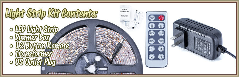 Create the perfect ambiance with this dimmable light strip kit . The 12 Button Wireless Remote lets you have the power to turn the lights ON/OFF, Increase or Decrease the Brightness, or even change them to 1 of 4 custom buttons which can be programmed to the brightness of your liking.