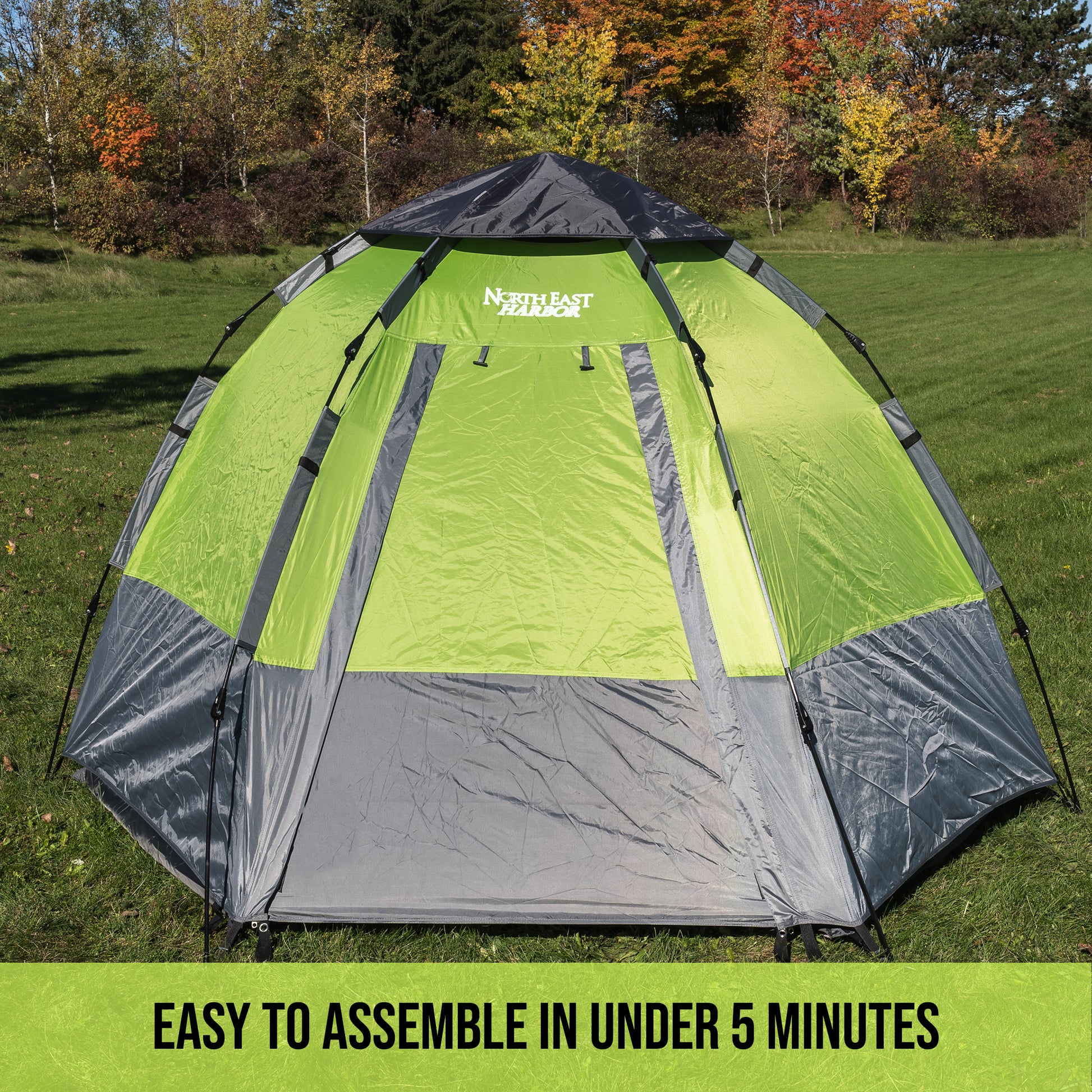 5 Person Instant Automatic Camping Tent Waterproof Double Layered Fabric, Portable Hexagon Tent with Carry Bag, Green, 8.9'L x 8.9'W x 5.25'H