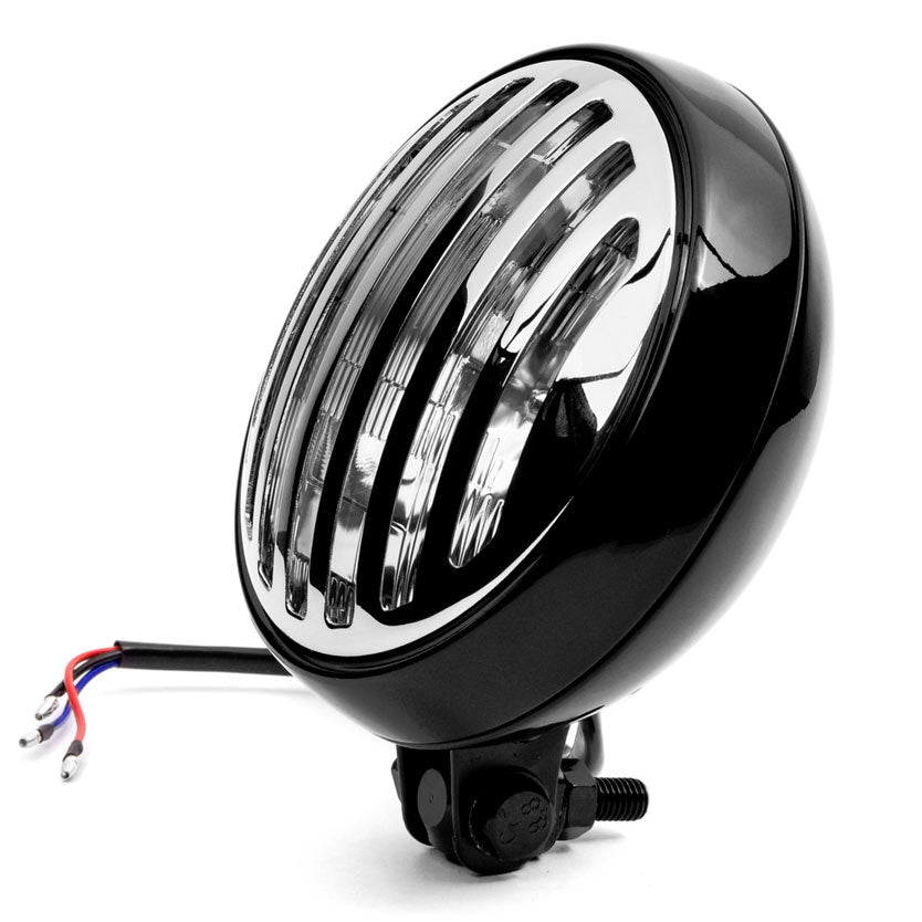 6" Black & Chrome Motorcycle Headlight with Grill High Low Headlamp Bottom Mount