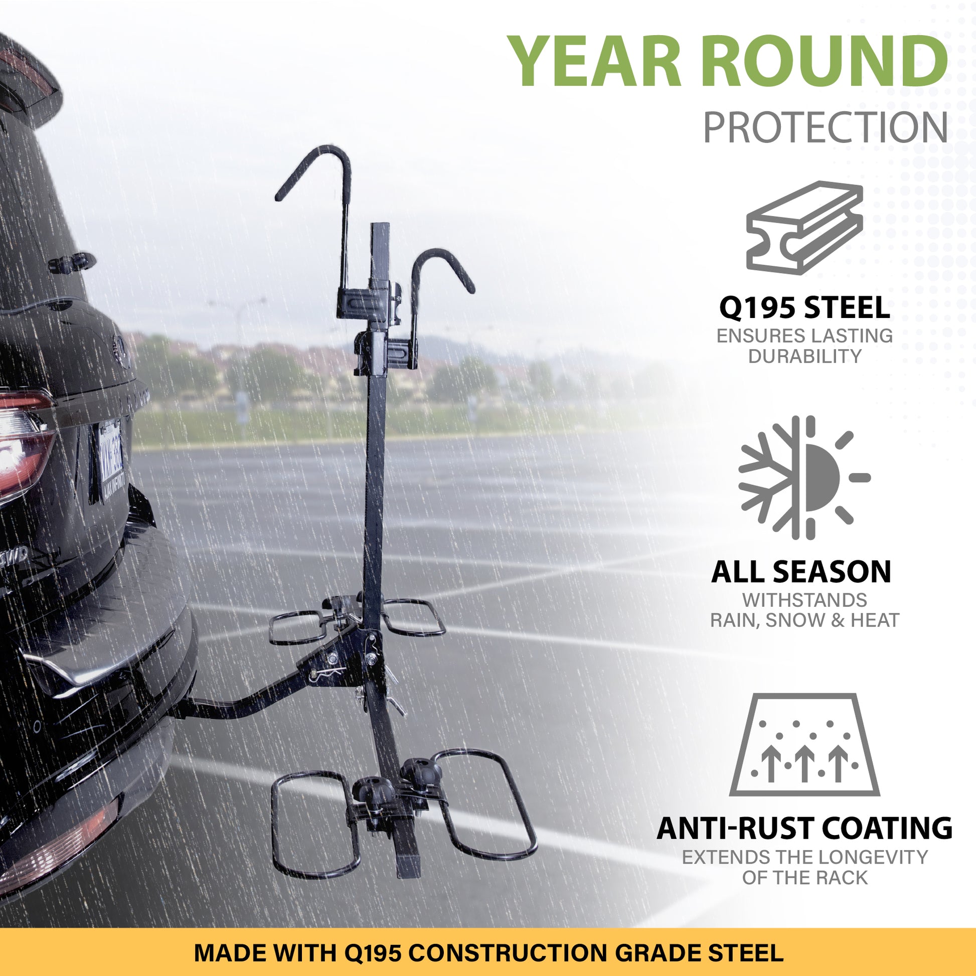 - [BIKE RACK WITH 90 LBS CAPACITY] - Biltek's car bike rack is made from robust Q195 steel grade, a common choice in building construction. Boasting anti-rust coating, this bike mount for car ensures year-round durability, making it an ideal bike carrier for all seasons. The upgraded hitch bike rack transports your bikes over long distances securely. Utilize the tire straps to ensure your bikes stay firmly in place during travel.