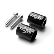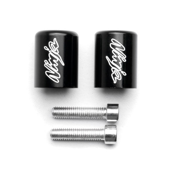 Black Kawasaki "Ninja" Engraved Bar Ends Weights Sliders - ZX6R, ZX7R, ZX9R, ZX10R, ZX12R and More! (1987-2012)