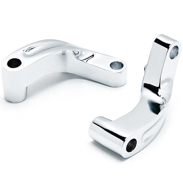 Chrome Mirror Relocation Extension Adapter Kit for Harley Davidson Motorcycles. Moves mirror out and up, clearing the master cylinder and allowing for maximum mirror adjustment. Extended's your mirrors 2" outward and also 1" upward which helps to improve rear visibility.