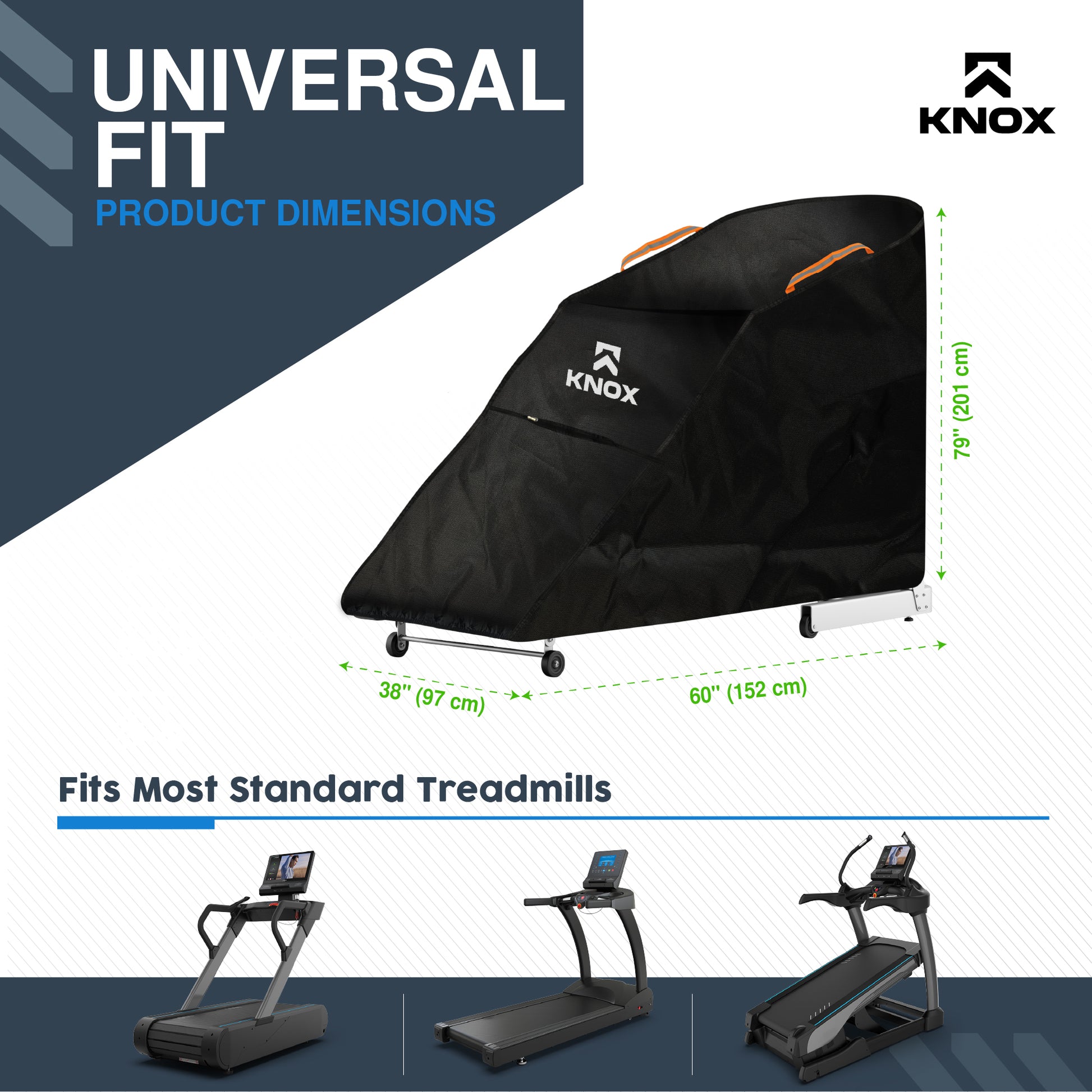 - [UNIVERSAL FIT] - Discover ultimate treadmill protection with the KNOX universal treadmill cover, crafted for superior quality and compatibility with NordicTrack, ProForm, XTERRA, Merax, Weslo, Nautilus, etc. Sized at 60"L x 38"W x 79"H, these treadmill cover for garage fits most treadmills & works with foldable, non-foldable types, elliptical machines and stair climbers. Ensure a perfect fit by measuring your equipment, making this accessories for treadmills a must-have for indoor & outdoor use.
