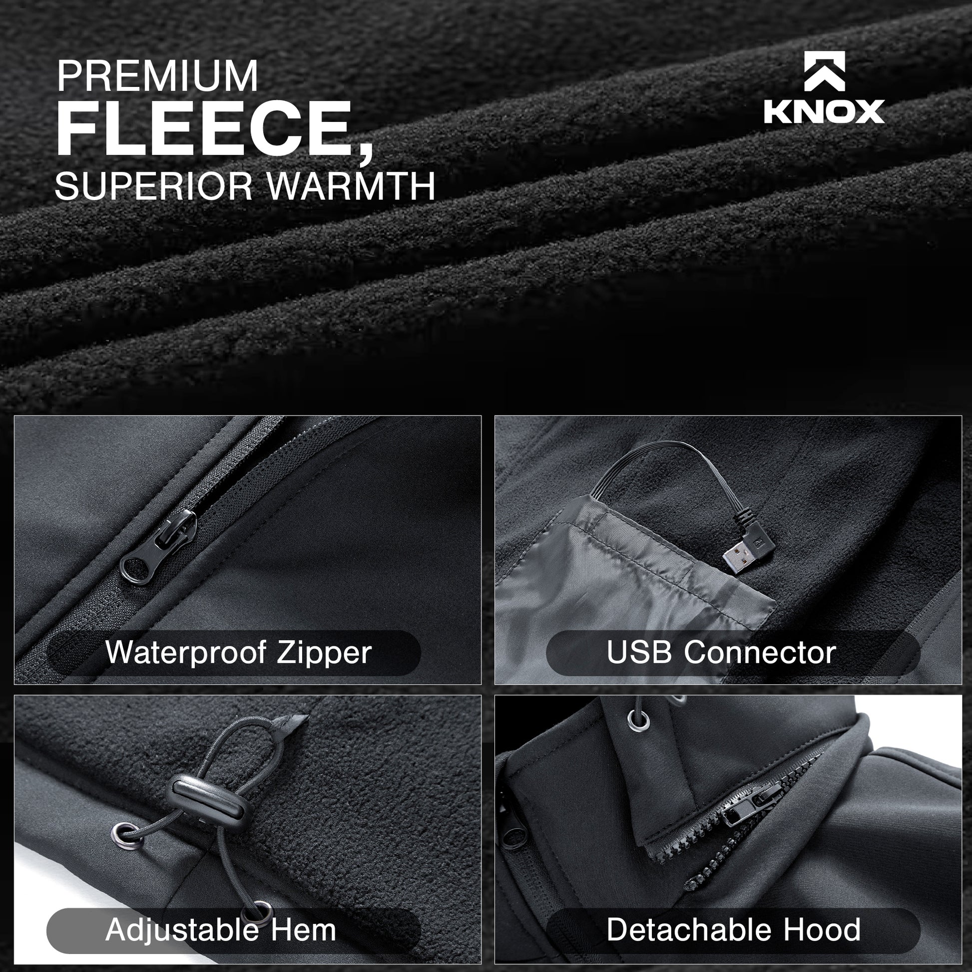 KNOX Unisex Heated Jacket with 4 Heat Zones, USB Powered