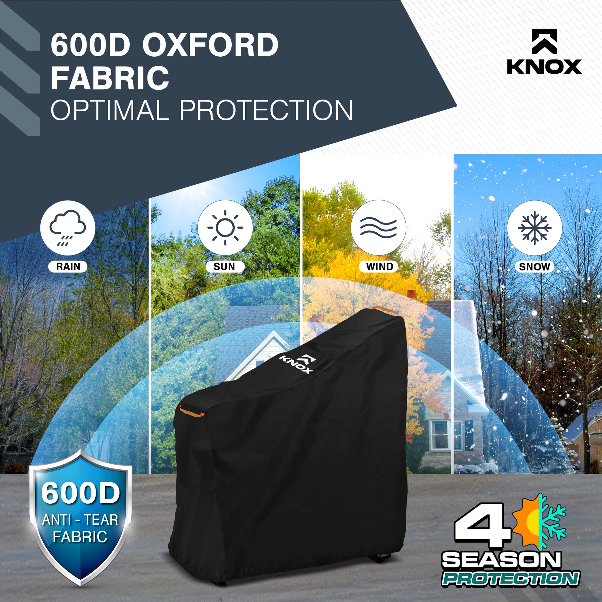 - [PRESERVE YOUR EXERCISE BIKE'S LONGEVITY] - Shield your exercise bike with the KNOX exercise bike covers, constructed from sturdy 600D PU fabric that withstands tearing. This outdoor bicycle cover boasts a waterproof & dustproof design, complete with UV protection that prevents fading. The PU coating provides durability against wear, tearing, and moisture. The breathable fabric preserves your bike's lifespan, shielding it from daily elements to keep it in prime condition for years.