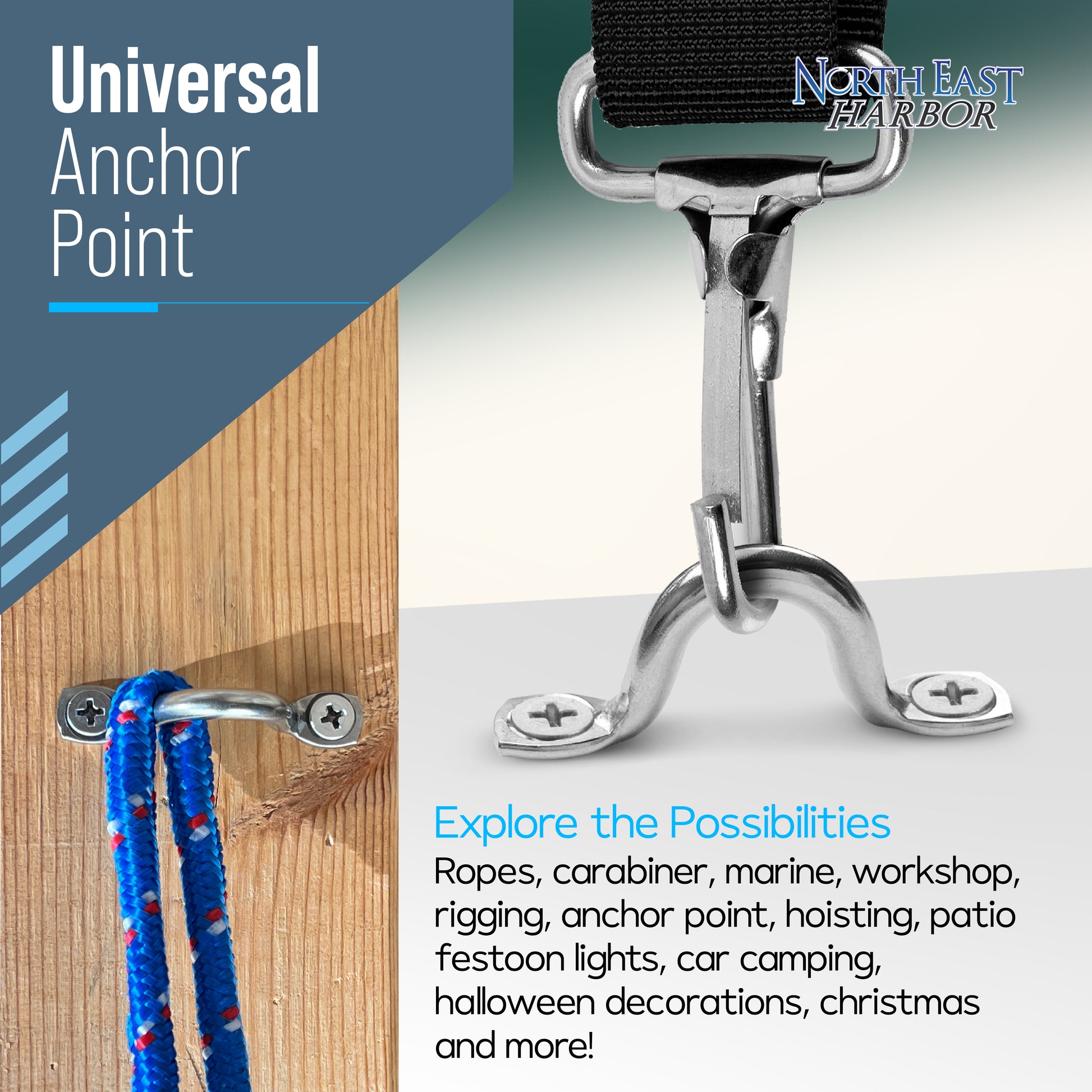 - [YOUR ALL-IN-ONE RIGGING SOLUTION] From hanging kayaks in the garage or boat house to securing shade sails, these multi-purpose loops offer endless possibilities. Use them to effortlessly hang your Christmas and Halloween decorations, create a tie-down for bungee cords ropes, or mount patio festoon lights with ease.