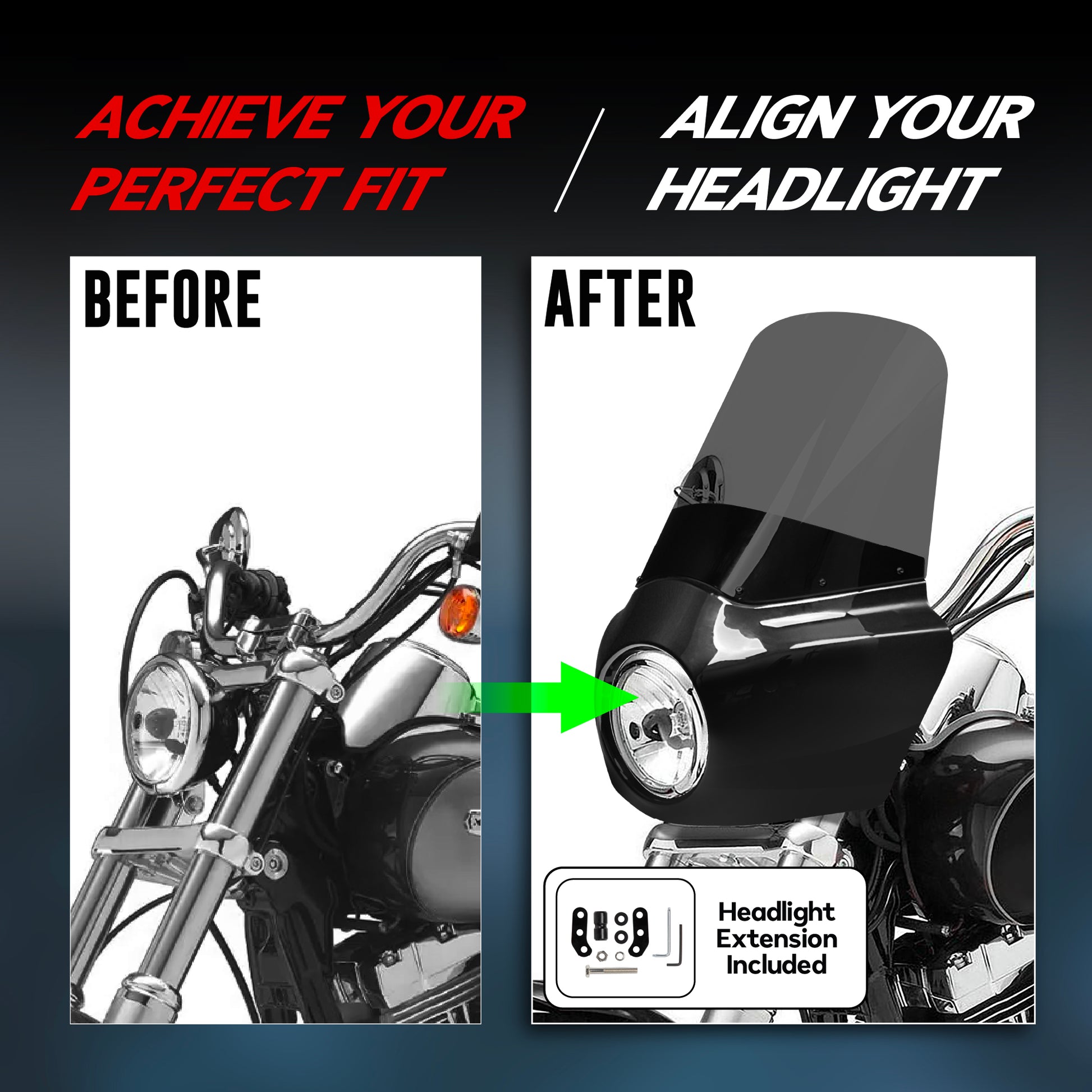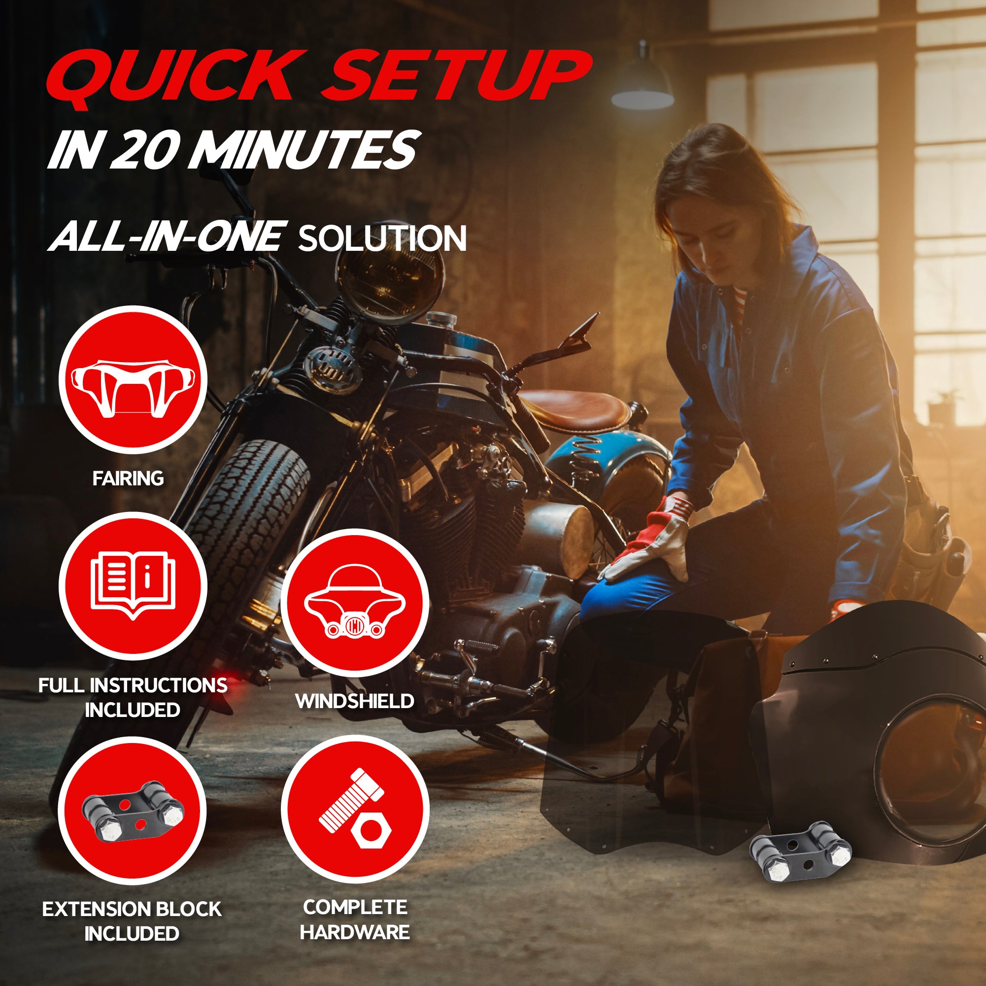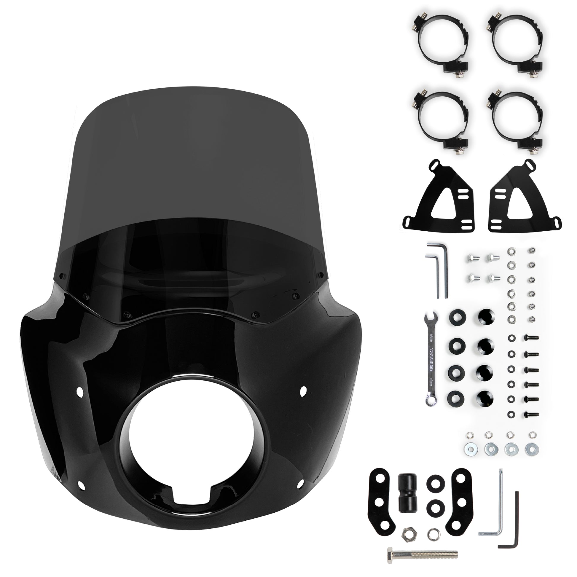 - [LIGHTNING SETUP IN 20 MINUTES] - Installation made easy to quickly improve the look of your motorcycle. Customize your motorcycle in just 20 mins with the Krator fairing and windshield kit. Our 3-in-1 design includes a motorbike headlight fairing, windshield, and mounting kit. Primarily designed to be compatible with Harley Davidson FXLRS Low Rider S 2020, 2021, 2022, 2023 and 2024 models. Adaptable to fit other standard models with modification experience.