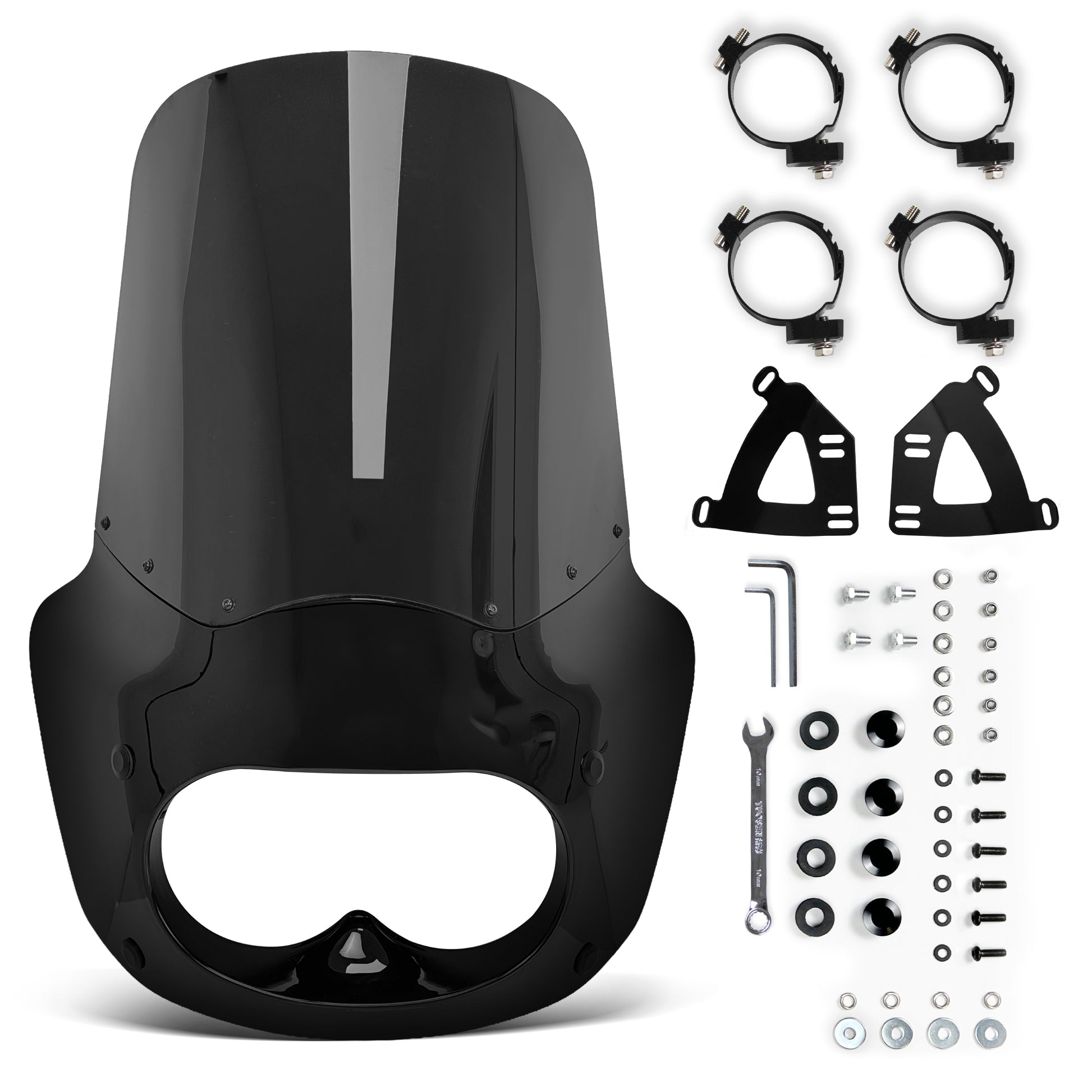 - [COMPLETE FAIRING KIT FOR QUICK & EASY INSTALL] This kit includes the gloss black fairing body, smoke windshield, fairing brackets, and mounting hardware. You receive everything needed in one complete package. All components are designed to work together, helping you assemble the fairing without sourcing extra parts and giving you a clean, organized installation with a finished custom look once installed.