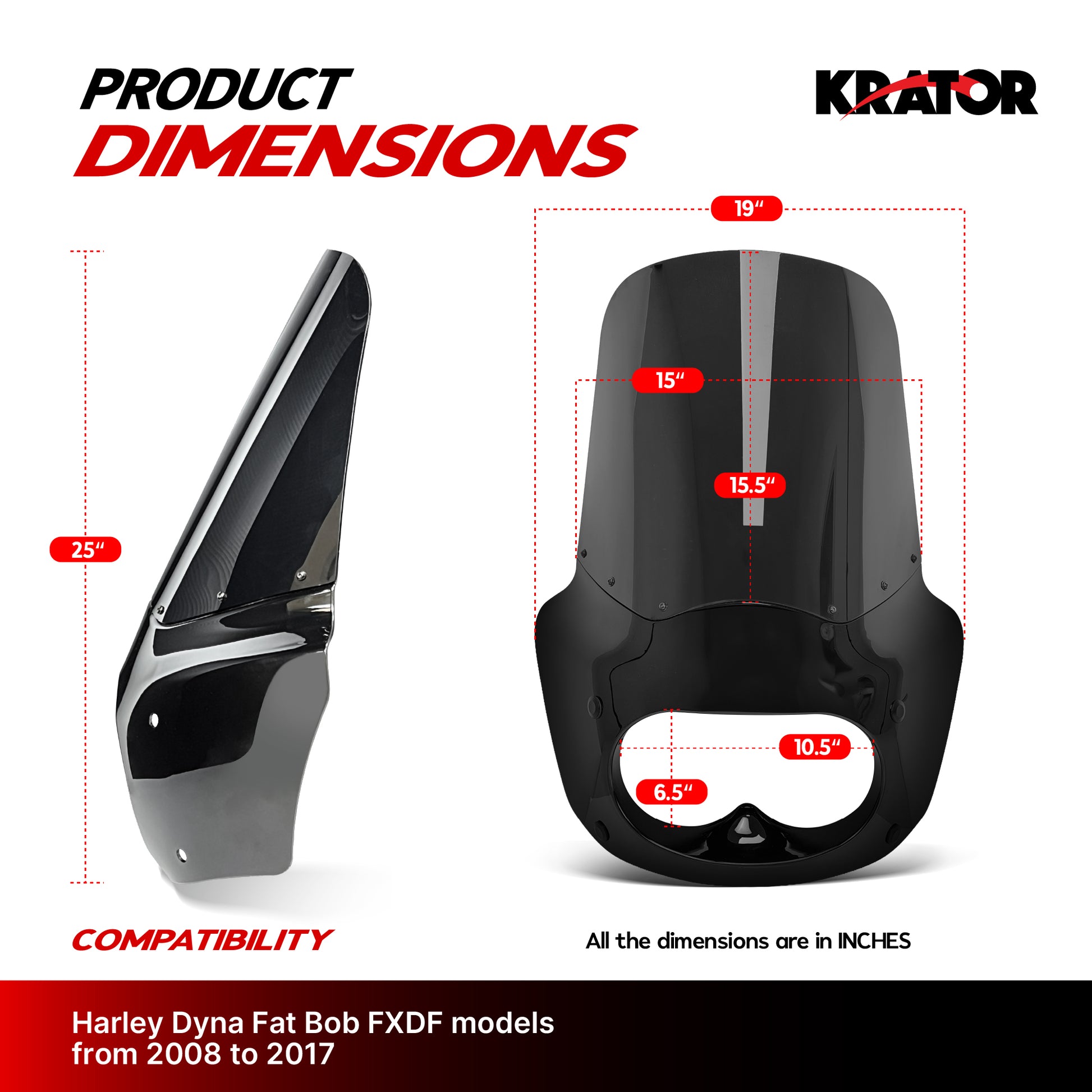 - [PERFECT FIT FOR YOUR MOTORCYCLE] Compatible with Harley Dyna Fat Bob FXDF models from 2008 to 2017, this fairing is designed to work with dual headlight setups and align with factory mounting points for proper positioning. This helps ensure the fairing sits correctly on your motorcycle, maintaining a clean appearance and supporting consistent fit without interfering with normal front-end operation.