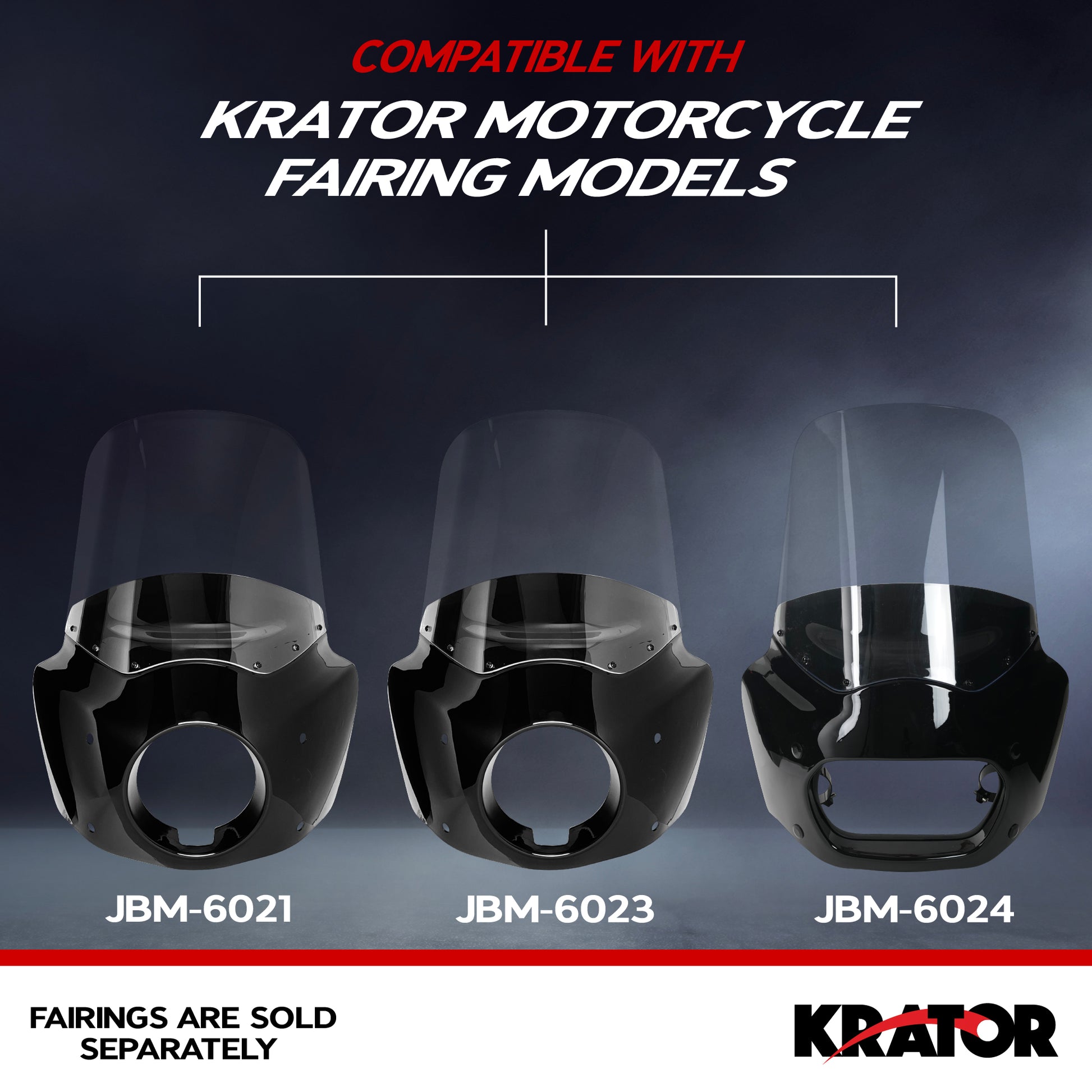 - [OPTIMAL FIT FOR YOUR KRATOR FAIRING] - Krator's motorcycle windscreen is professionally crafted to fit your motorcycle fairing. Purchase Krator's replacement motorcycle windshield for your fairings, compatible with models JBM-6021, JBM-6023, and JBM-6024.