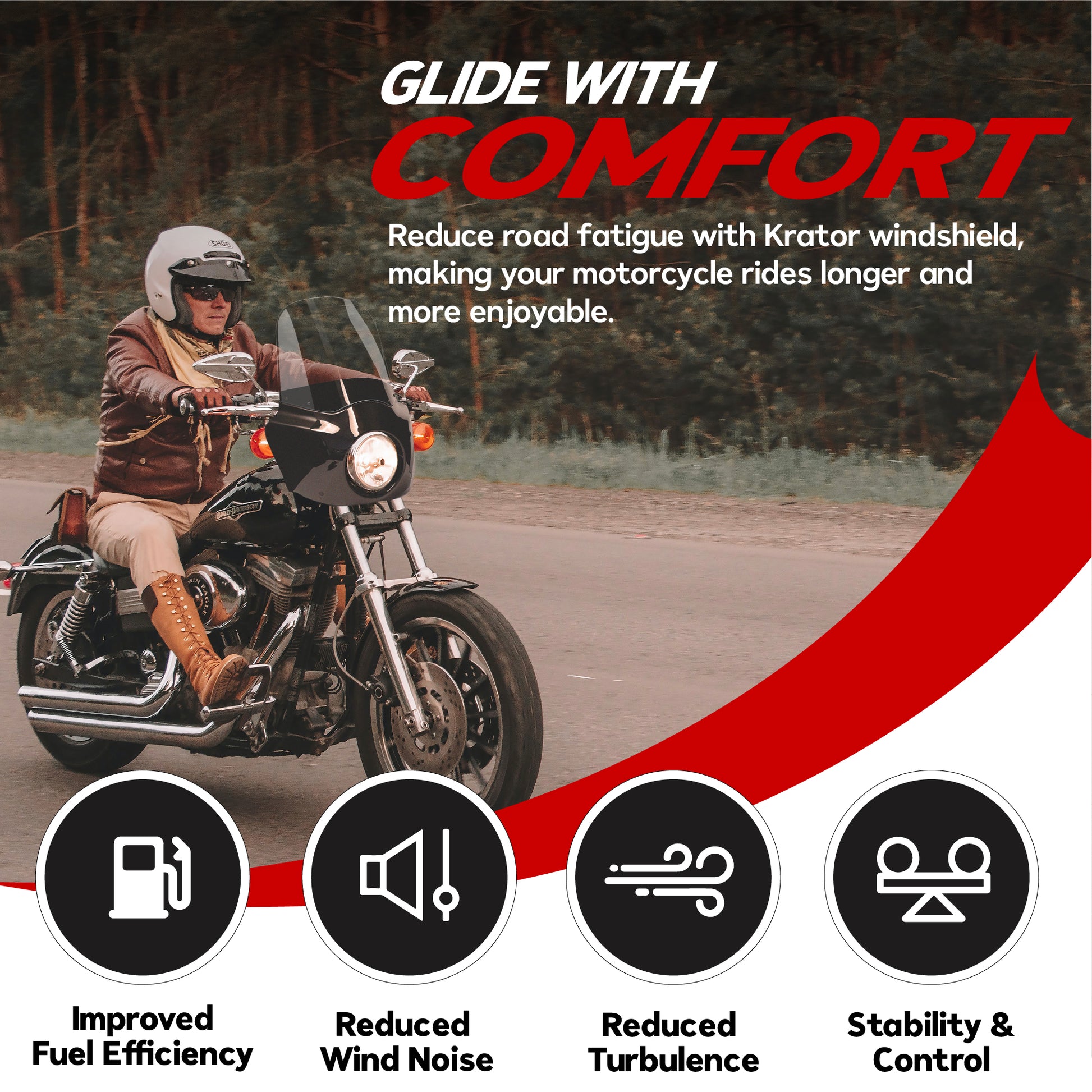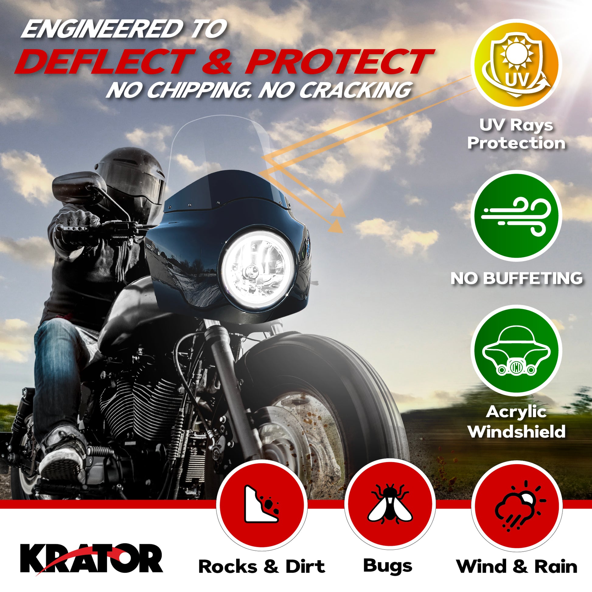 - [DEFLECT DEBRIS, CRUISE COMFORTABLY] - Embark on high-speed adventures in comfort with Krator's motorcycle fairing windshield replacement. This motorcycle windscreen is designed to endure speeds of up to 100 mph (160 km/h).