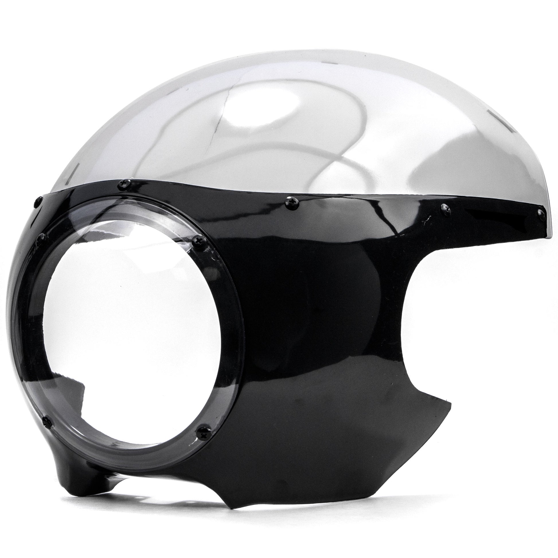 Brand New Headlight Fairing with Windshield. Perfect for cafe racers, trikes, streetfighters, project bikes, Harley Davidsons, choppers, crusiers, etc.