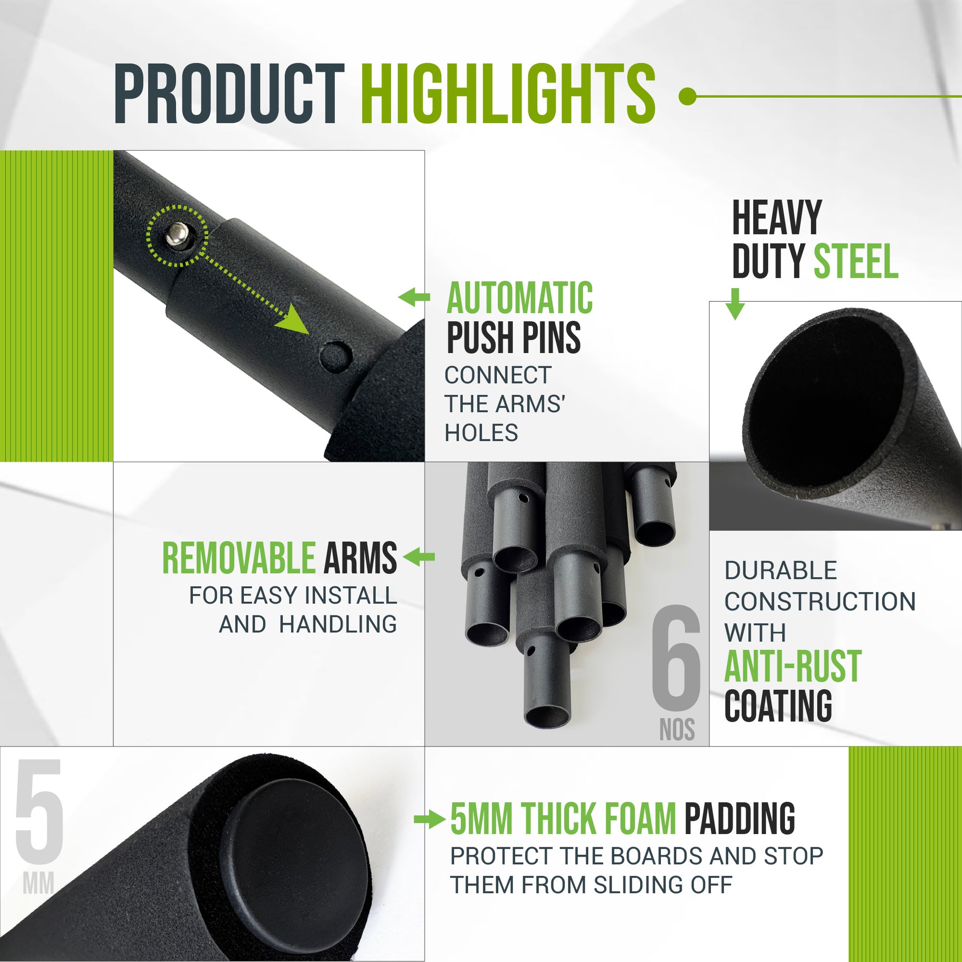 - [ANGLED ARMS FOR SAFER STORAGE] The Structure of Our Lumber Rack Makes It Easy to Remove and Put Things Back. The Arms Are Designed and Constructed to Create a 10 Degree Angle With the Mount. This Makes Use of Gravity to Help Secure Objects Further and Prevent Them From Sliding or Falling. We Have Included Multiple Thoughtful Design Elements to Ensure Safe Storage!