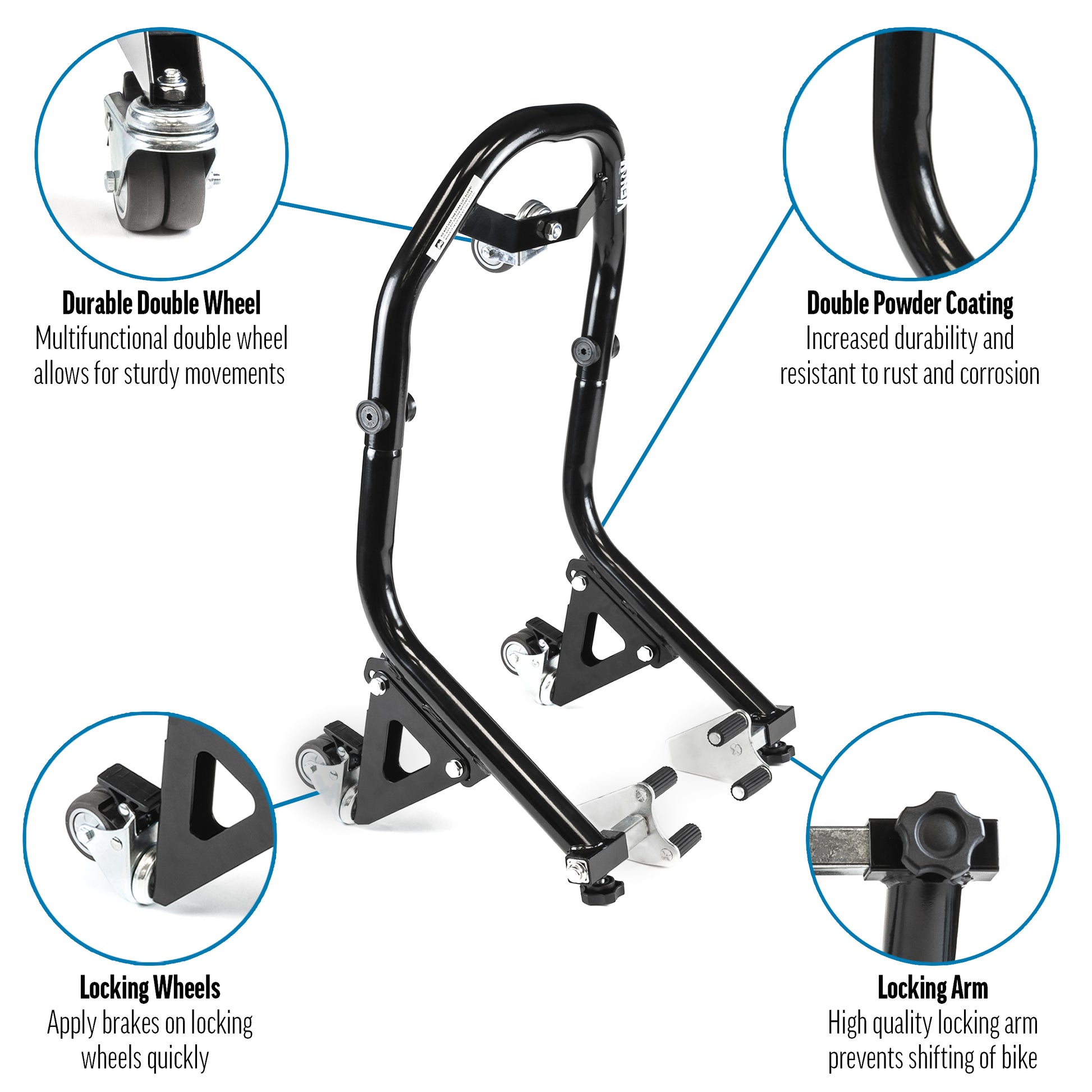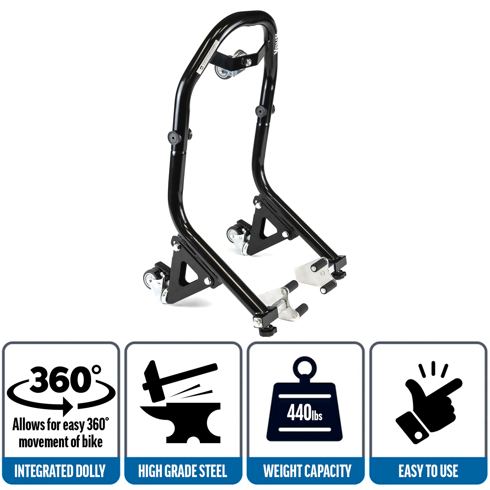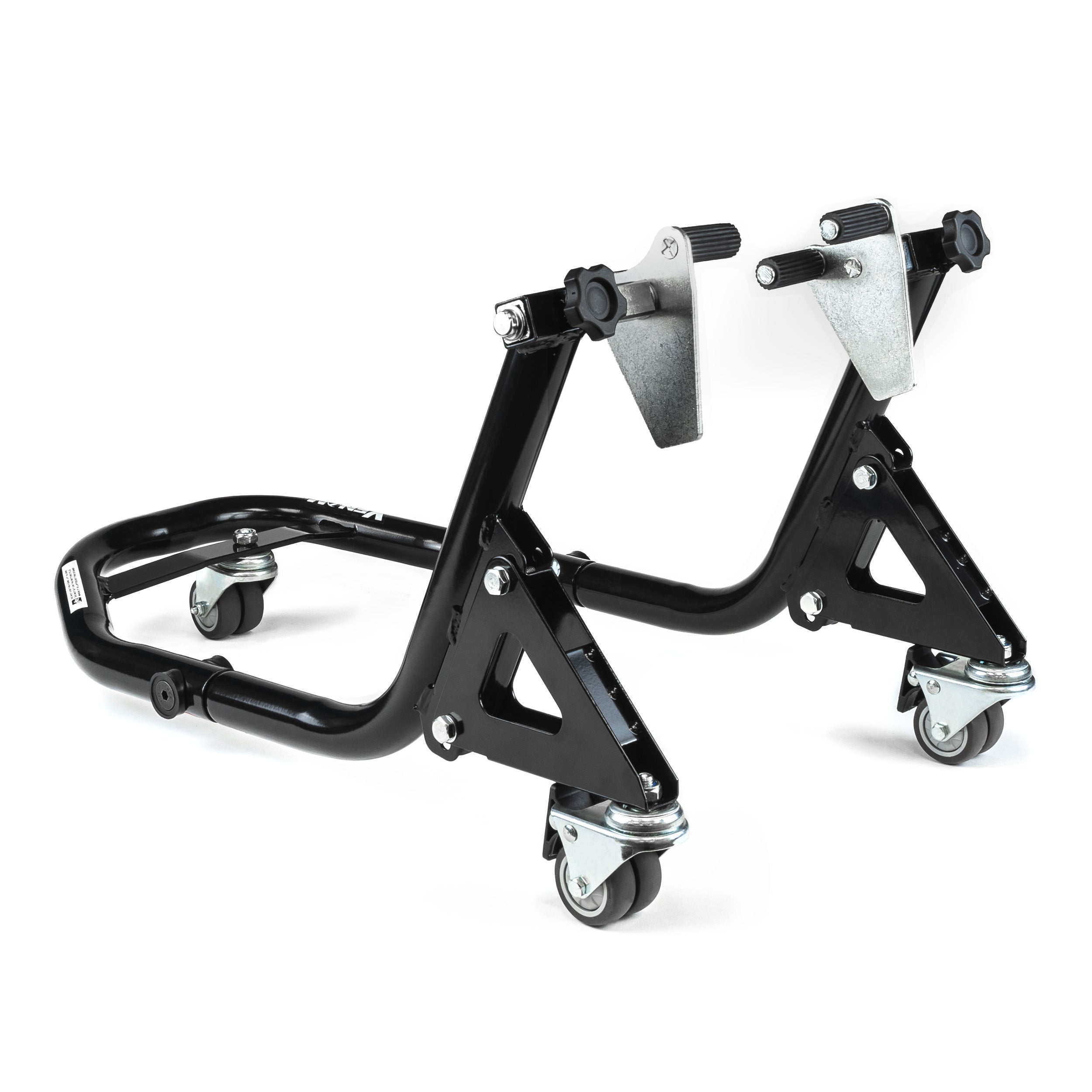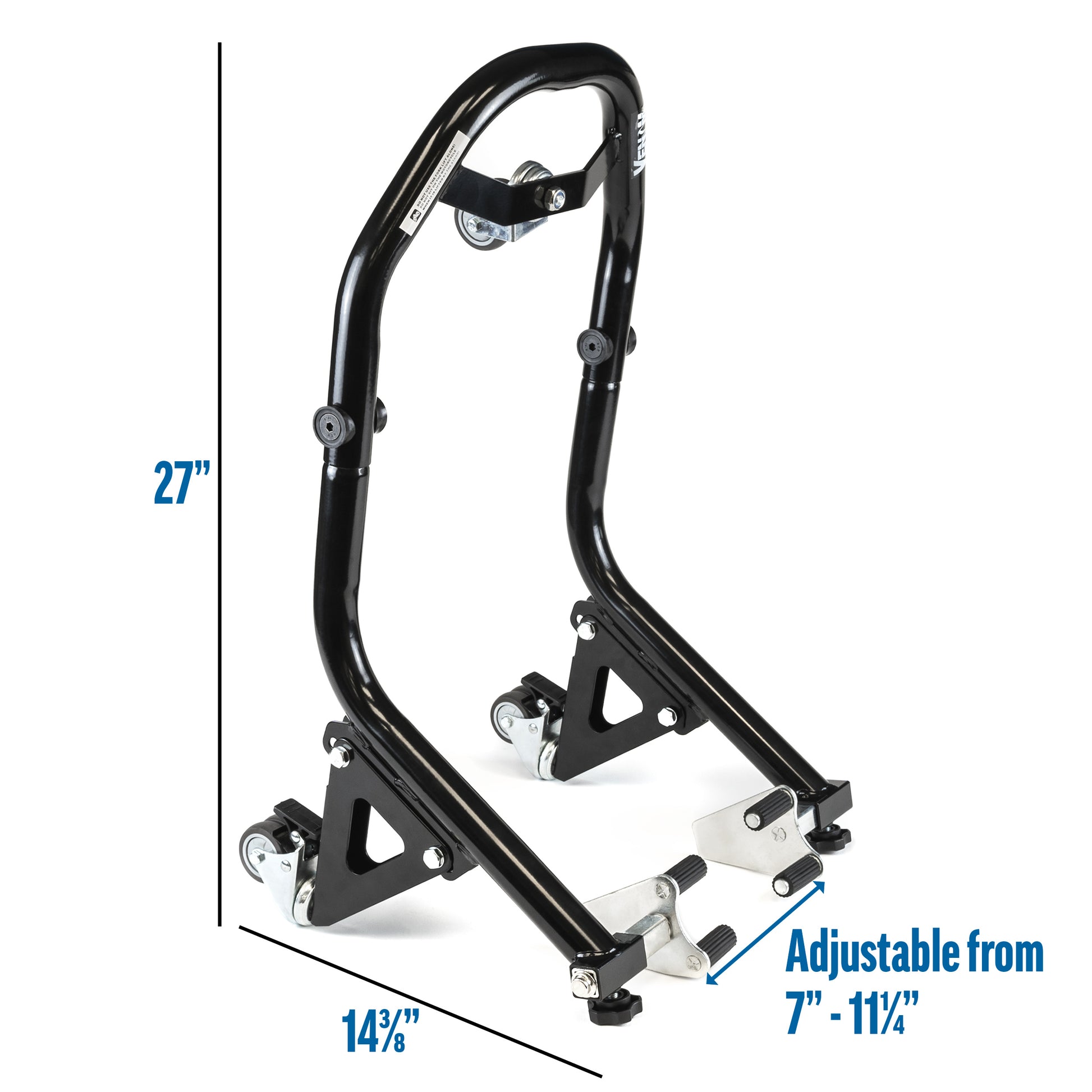 Venom Motorcycle Front Wheel Lift Stand with Dolly Wheels, Fork Lift Attachments, Black