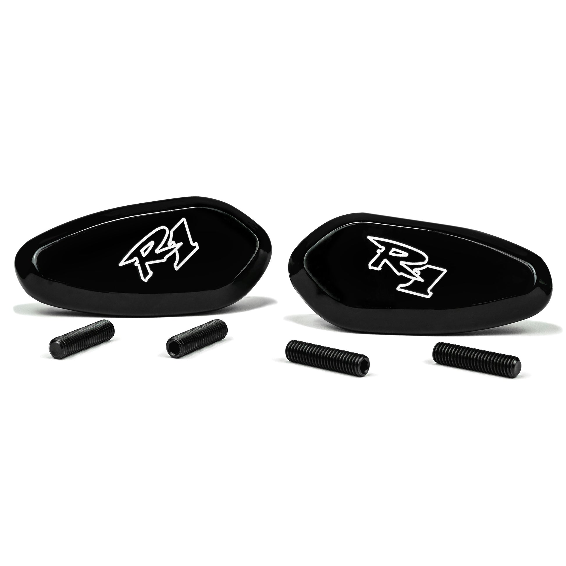 Yamaha YZF R1 Mirror Block Off Plates Logo Engraved Black Set (2000-2008)