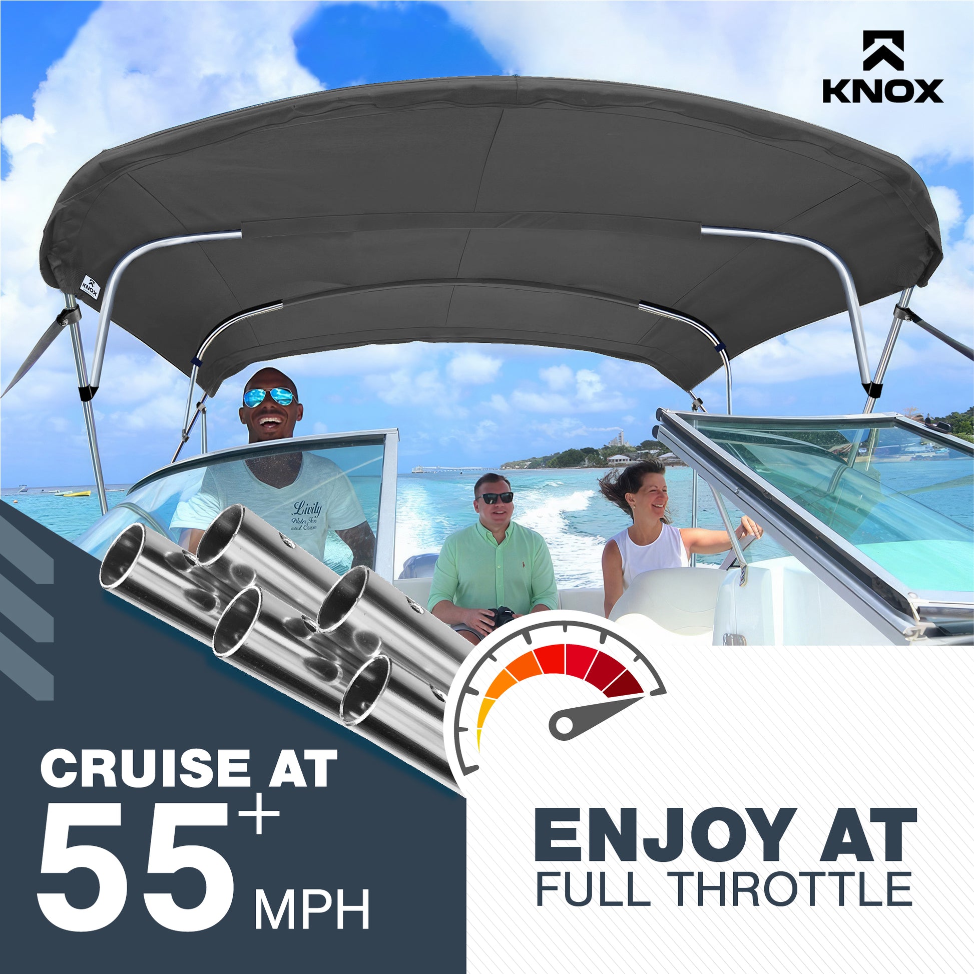 - [CRUISE WITH CONFIDENCE AT 55+ MPH] - Our Bimini canopy for boat models of all types offers exceptional durability. A sleek aerodynamic design reduces drag, while patent-pending hook-and-loop straps ensure secure coverage against harsh UV rays.