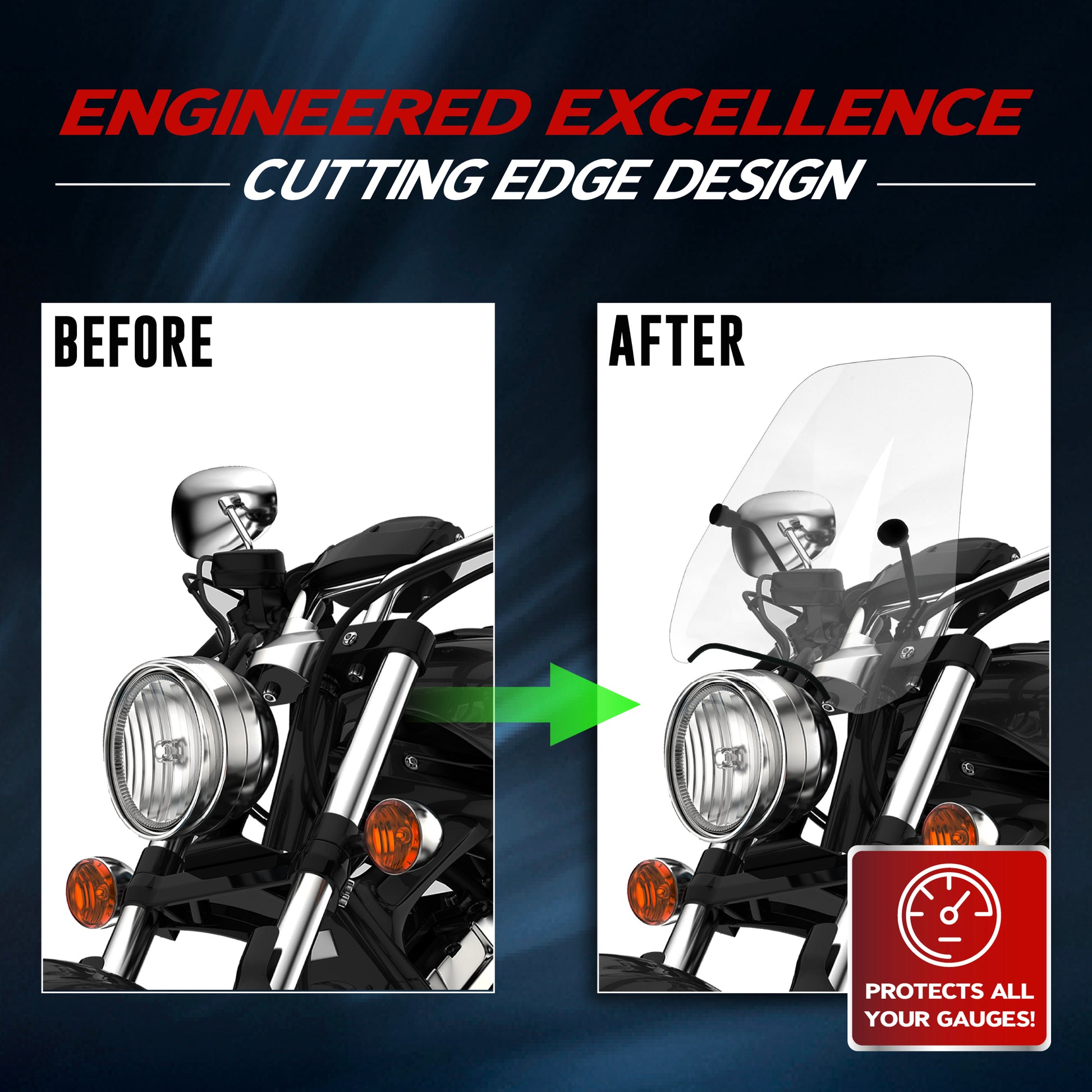 - [CRUISE SILENTLY, DEFLECT EVERYTHING]- Embark on high-speed adventures with comfort using KRATOR's motorcycle wind deflectors. These custom windshields for motorcycles are made to withstand high speeds, effortlessly deflecting debris, rain & bugs.
