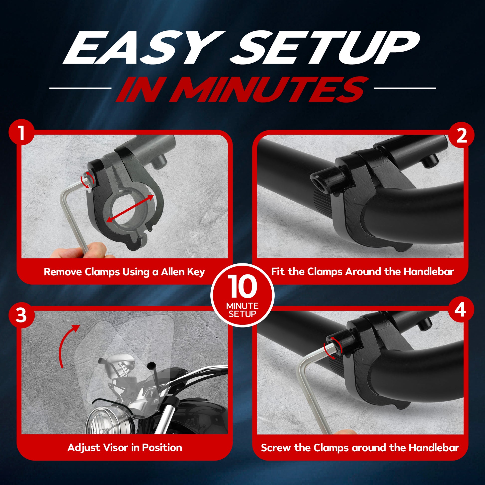 - [OPTIMAL FIT FOR YOUR MOTORCYCLE]- KRATOR's motorcycle windscreen is a universal motorcycle windshield fitting motorcycles with 7/8 Inch (2.2 cm) or 1 Inch (2.5 cm) handlebars.
