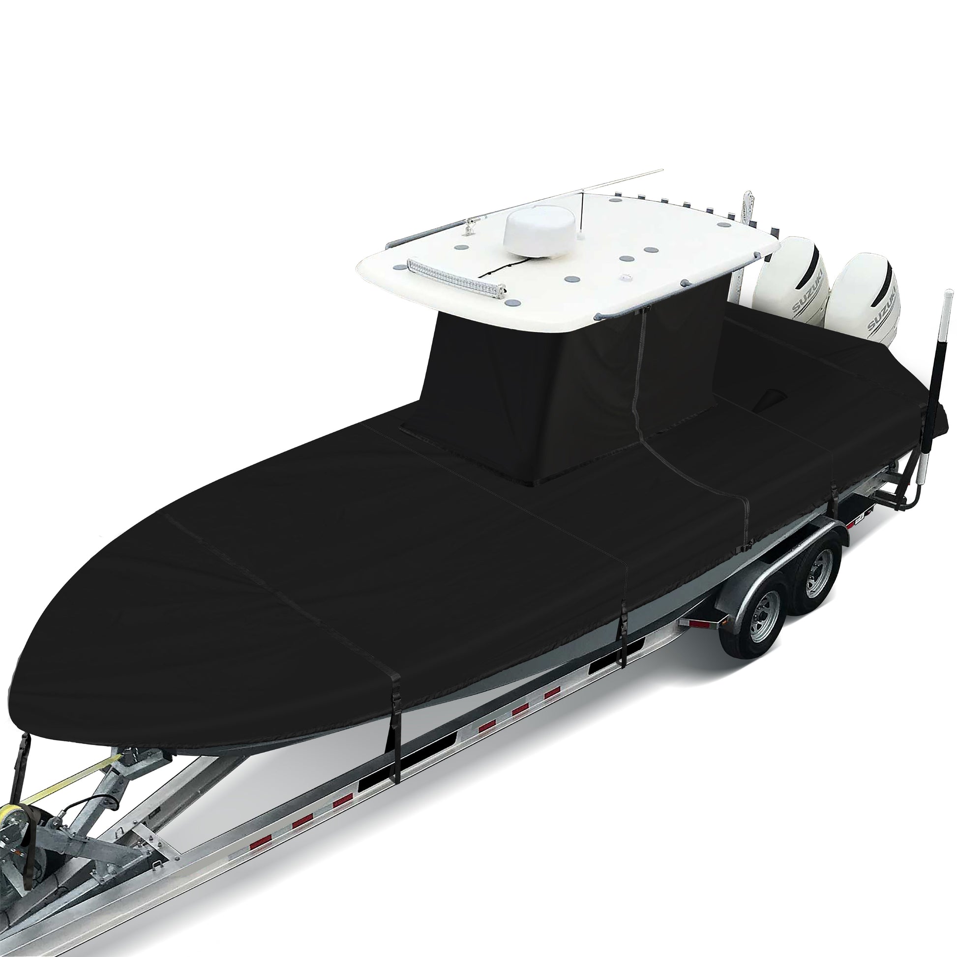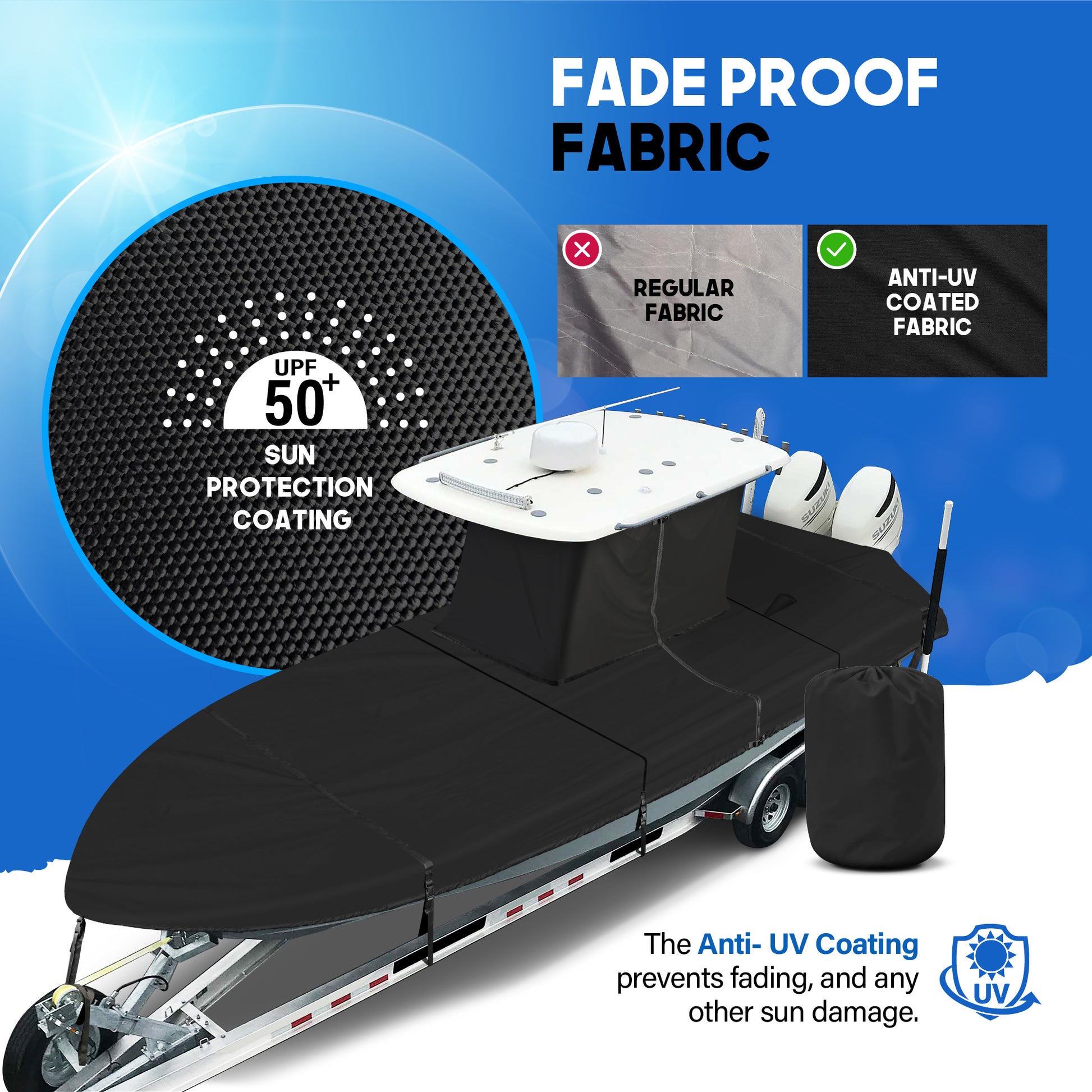 - [ULTIMATE ALL-WEATHER PROTECTION] Our T-top boat cover is crafted from heavy-duty thickened 8.5 oz, triple-layered 600D Oxford polyester fabric that is both tearproof and rip-resistant.