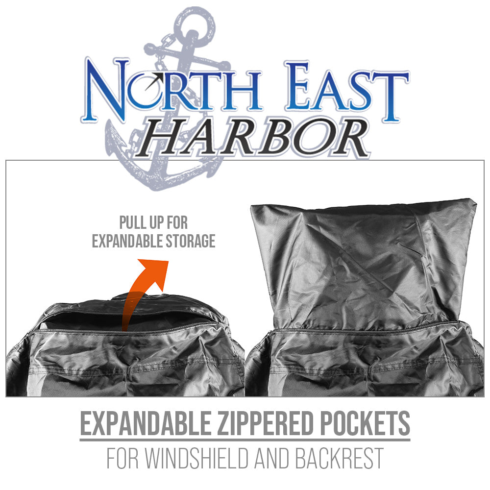 - Innovative Design - Flat Elastic Hem, Expandable Zippered Windshield and Backrest Pockets, High Visibility Reflective Stripes, 2 Elastic Cords with Coated Hooks
