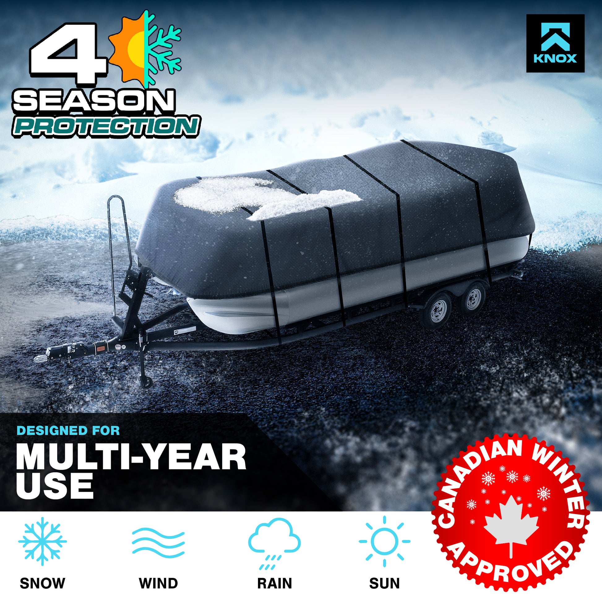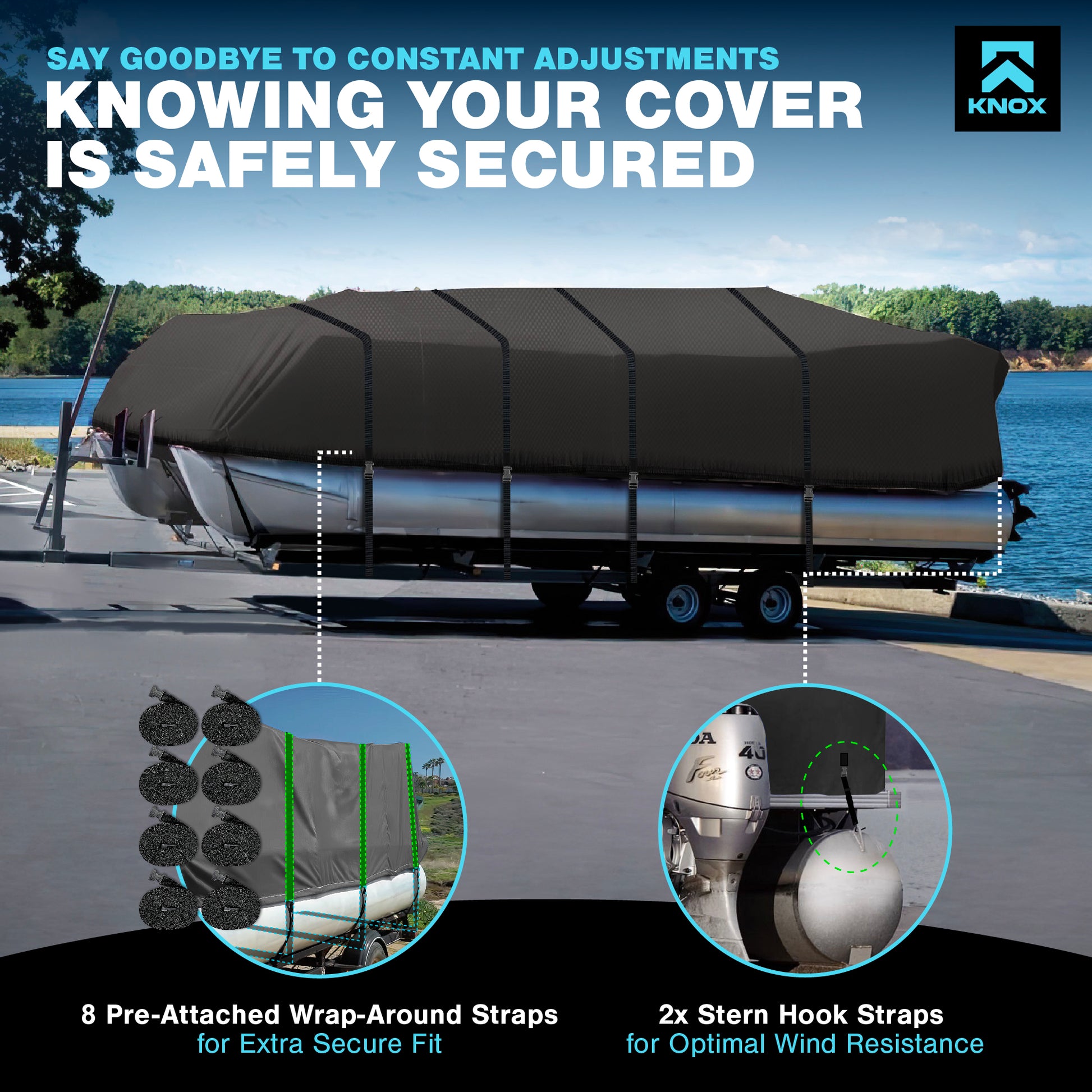 KNOX 2nd Gen Heavy Duty Waterproof Pontoon Boat Cover Marine Grade 600 Denier Polyester Trailerable Pontoon Covers - Includes Storage Bag