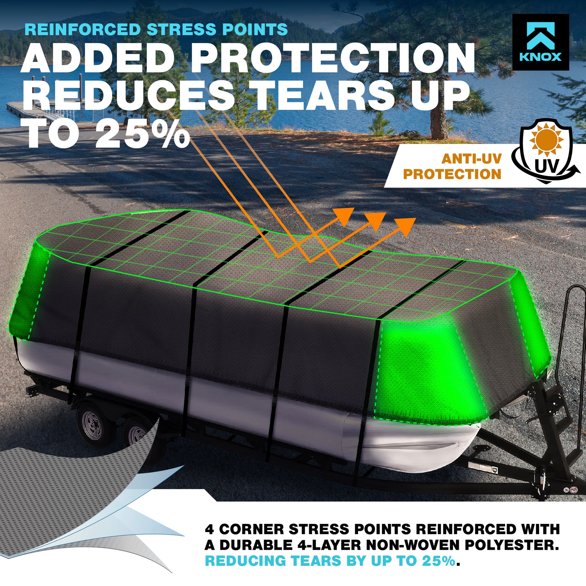 - [Heavy-Duty Marine-Grade Fabric] - Advanced protection with KNOX 2nd-generation heavy duty pontoon boat cover.