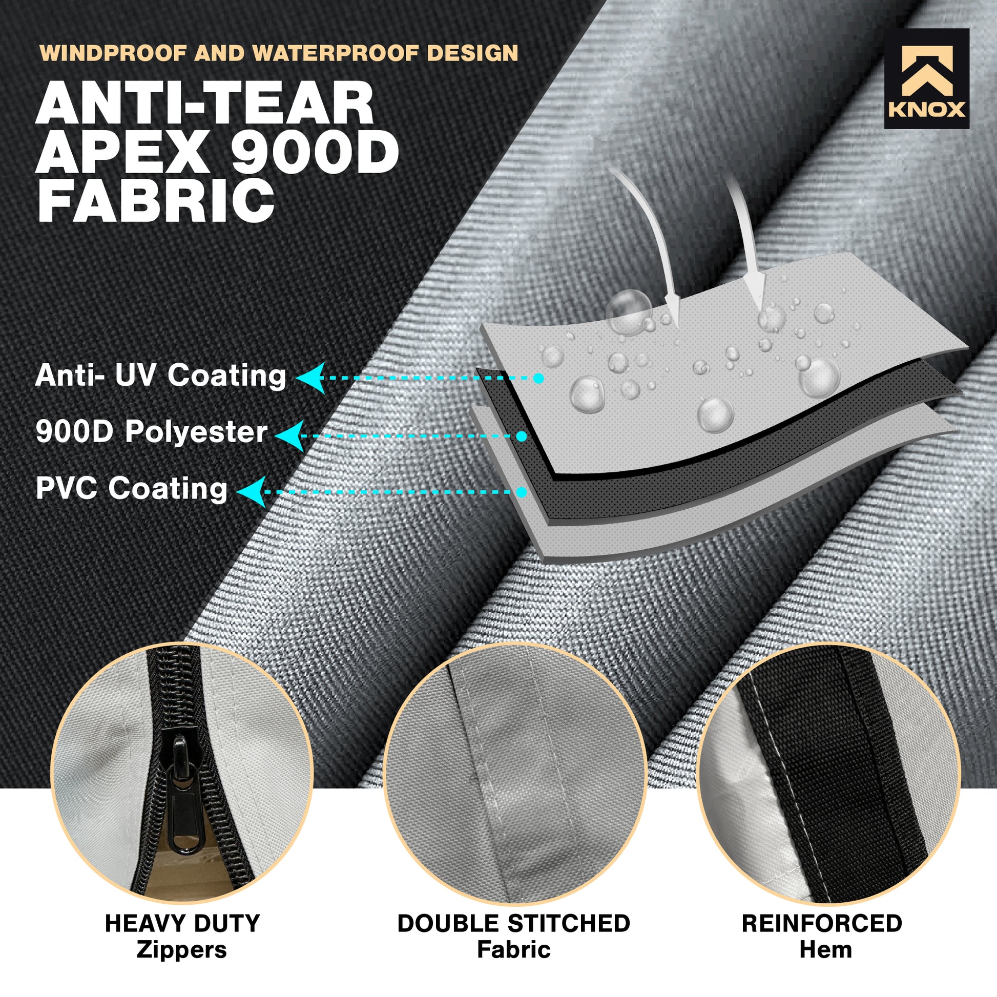 - [WINDPROOF & WATERPROOF ANTI-TEAR FABRIC] - Discover unparalleled protection with KNOX fifth wheel front skirt, crafted from rip-proof Apex 600D material. Experience lasting durability and reliable UV protection with our lightweight PVC-coated design.