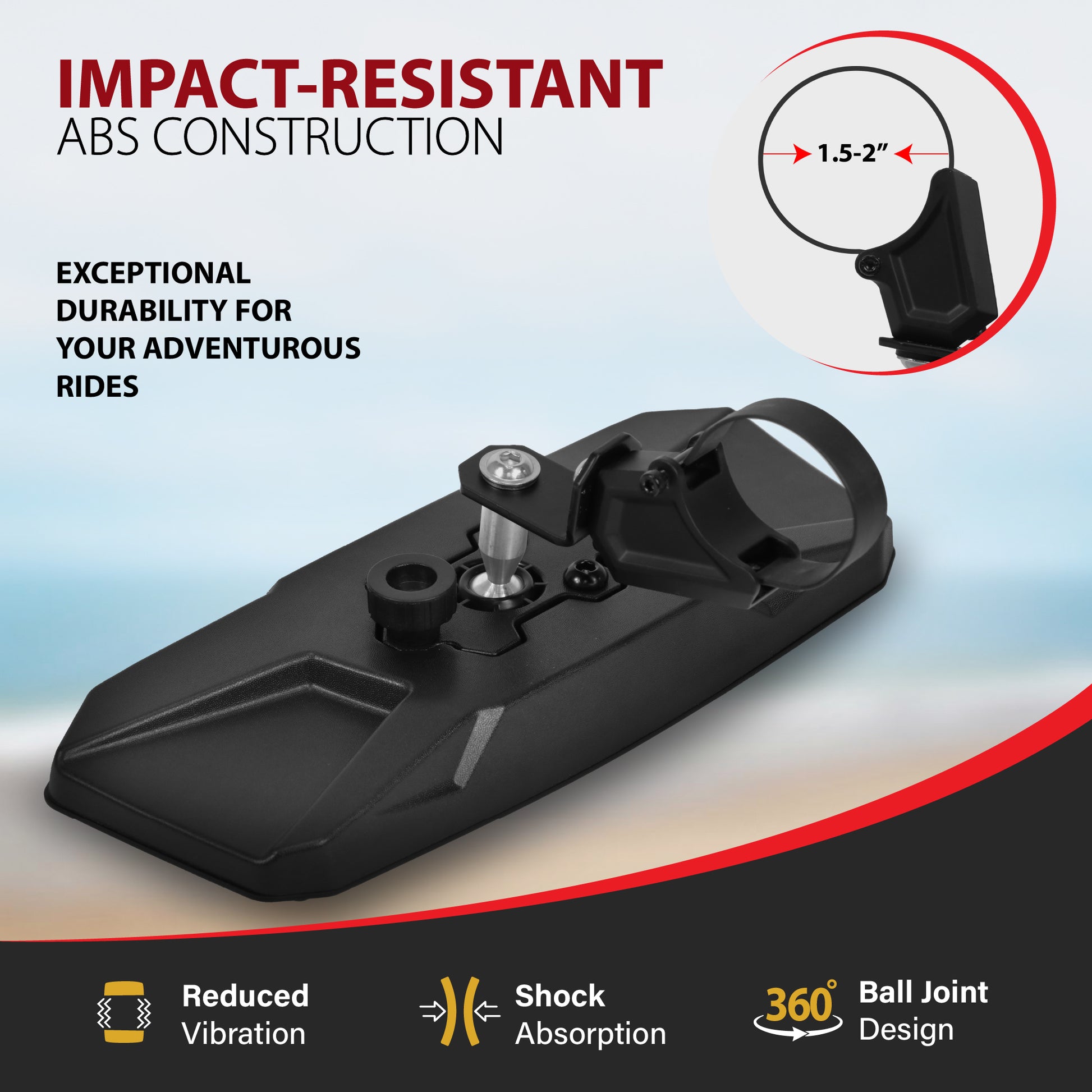 - [BUILT TO TACKLE EVERY TERRAIN] - Constructed with high-impact ABS housing that resists shocks and vibrations, ensuring stability even on rough and bumpy trails. Drive at high speeds or in high winds, knowing these sxs rear view mirrors won't shake or rattle. Krator's bracket for rear view mirror for UTV is made from durable aluminum alloy, the sturdy brackets maintain stability even in the most challenging conditions. Experience durability with Krator's rear view mirror for UTV.